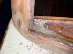 In the bottom corner of the starboard side, there is some rot, but it can be easily repaired, and once the wood is dry, I can also remove most of the dark spots. Unfortunately, I have to make new window moldings, the old ones were glued with Sikaflex so they were impossible to take off without ruining them.