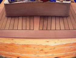 I now have a brand new planer instead of the defect one, so now I can get on with the bigger stuff. I have found the perfect piece of wood for the side deck on the starboard side - watch how perfect the oars align. September 12, 2008: Finished! The next will be the foredeck and the main cabin.
