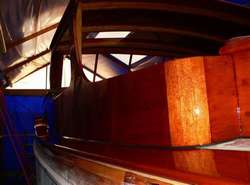 October 18, 2009: This week is fall holiday, so I have been full time in the boat tent. I have done a lot of work, and have now come so far that the roof can get oil. I hope to apply oil to the rest of the superstructure oil next weekend.