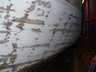 18. oktober 2009:Jeg har i denne uge fået spartlet alle skruehuller i styrbord side, så der mangler kun at blive slebet - så kan jeg fuge under skandækket. I bagbord side har jeg slebet hele vejen hen samt grovspartlet skruehullerne. Jeg venter med at nådlime indtil jeg har givet overbygningen olie, for det er ved at være noget fugtigt i vejret - træet skulle jo gerne være tørt. 17. maj 2010: Så har vi overstået vores søn Lars' konfirmation, og jeg er blevet færdig med at lakere overbygningen. Jeg er nu gået i gang med at færdiggøre skroget. Jeg har fået ordnet alle de rustne skruer i fribordet, så det skal nu kun finspartles, så er det klar til maling. Lidt anderledes ser det ud med bunden - jeg vidste at der nok skulle skiftes nogle skruer, men det har vist