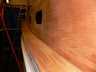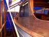 I also started cleaning the joints on the foredeck. It's no wonder they were leaking, there was neither tape nor cotton in the bottom of the joints. Initially, some kind of plastic cord has been pressed between the planks but it is long gone - I'll have to caulk it with cotton before the sealant. I will also replace a number of plugs in the teak deck - in some places, mahogany plugs have been used. March 8, 2008: Now I'm almost done with the scraping and sanding the port side - phew, the mahogany on the cabin sides is hard and needs to be sanded a lot to get to the nice red color. I also peeled out the patches that had been inserted right up under the cabin roof - it was not particularly well made, so I'll have to redo them. Everything is still a bit moist, especially where the wood was covered with fiberglass. March 21, 2008: Now I am finally done with scraping and rough sanding on the exterior, and the wheelhouse roof has been removed. There is some rot here and there, but nothing serious. I have started cleaning and sanding the interior of the wheelhouse, I won't do it all this year, only the sides and the front. It looks like the roof has sunk approx. 3.5 cm at the aft end, but since everything will be replaced anyway, this doesn't matter.
