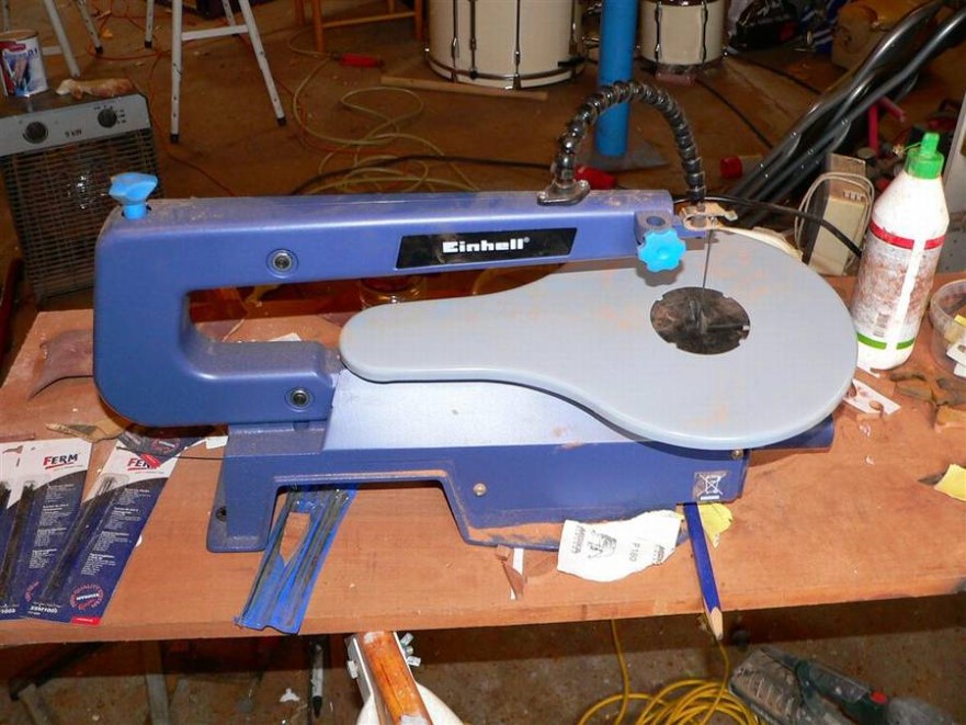 Last year, due to lack of time, I had to settle for a name tag in plastic foil, but now it has to be made right. I have chosen to cut the letters out of 8 mm mahogany, and use the same font as seen at the logo at the top of this page. I bought a cheap decoupage saw for the job, and it has proven to be a useful tool for many other things as well.